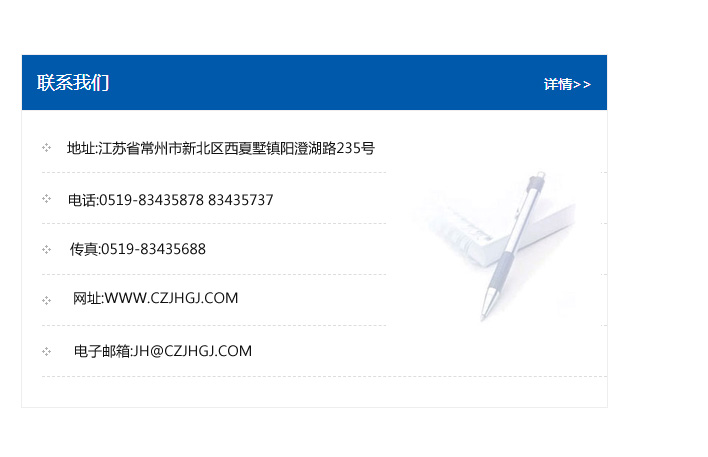 地址:常州市新北區友邦商務大廈1幢16、17層  電話:0519-85101652  傳真:0519-85112595  郵編:213022  網址:www_cz-jiayue_cn.xp4p.com  郵箱:xiajifengaa@163.com